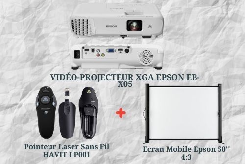 Pack Vidéoprojecteur XGA Epson EB-X05 + Ecran Mobile Epson 50'' 4:3 + Pointeur Laser